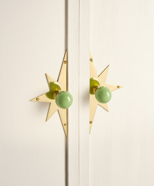 Coloured Knob, Pistachio, Brass