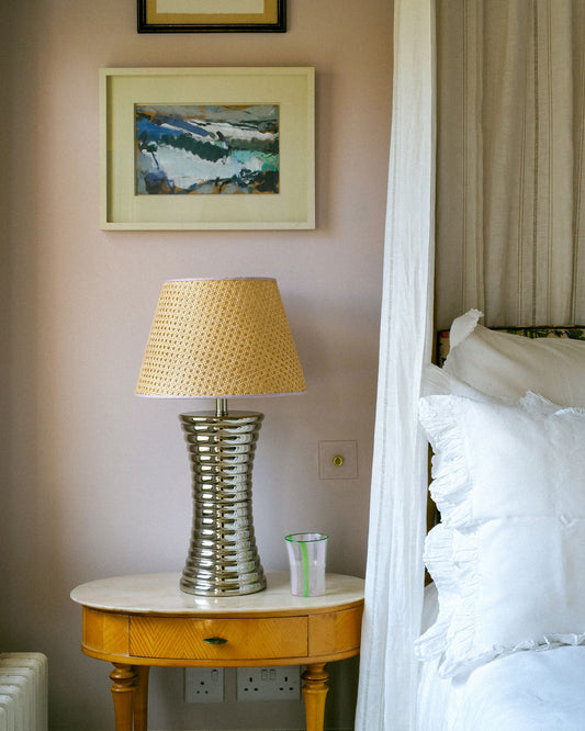 Cane Lampshade, Pink Trim, Medium
