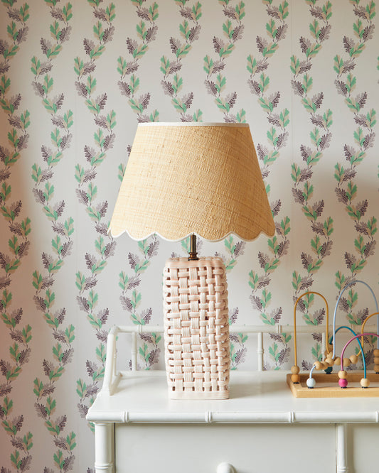 Raffia Scallop Lampshade, Cream Trim, Small