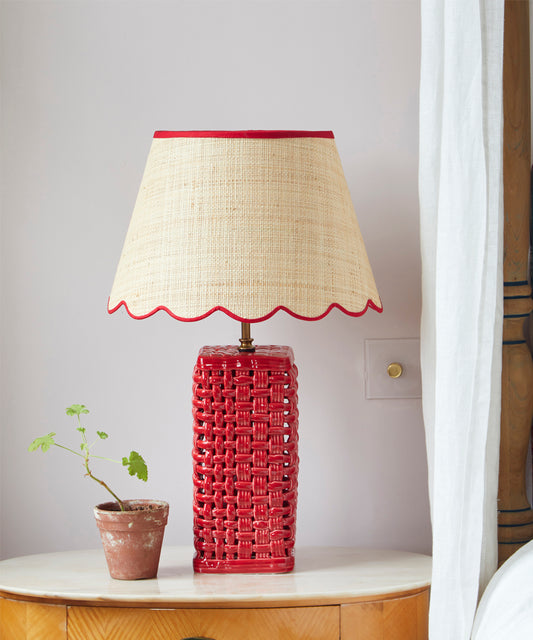 Raffia Scallop Lampshade, Red Trim, Small